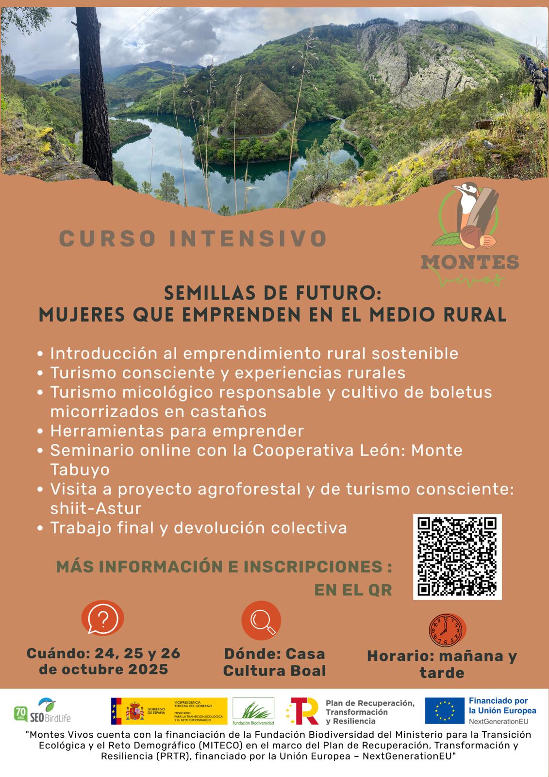 - 24, 25 y 26 de octubre: curso intensivo 'Mujeres que emprenden en el mundo rural'. En la Casa de Cultura de Boal, jornada de mañana y tarde. Necesaria inscripción previa.