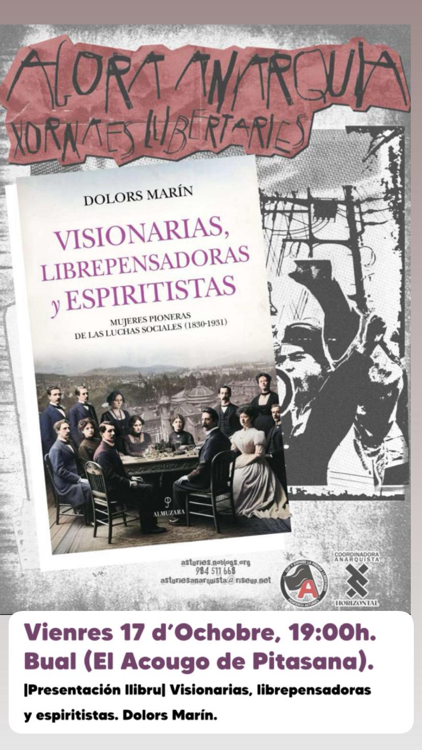 - Viernes 17 de octubre: presentación del libro 'Visionarias, libres pensadoras y espiritistas', de Dolors Marín. En el ACOUGO de Boal, a las 19:00 horas.