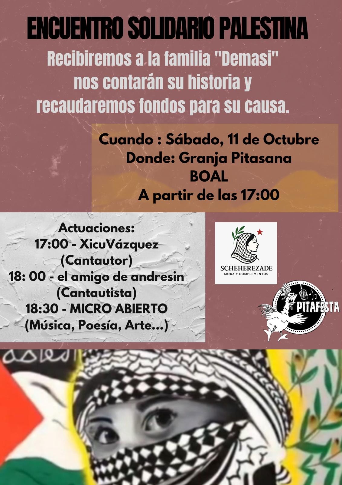 - Sábado 11 de octubre: encuentro solidario por Palestina. En Armal, a las 17:00 horas..
