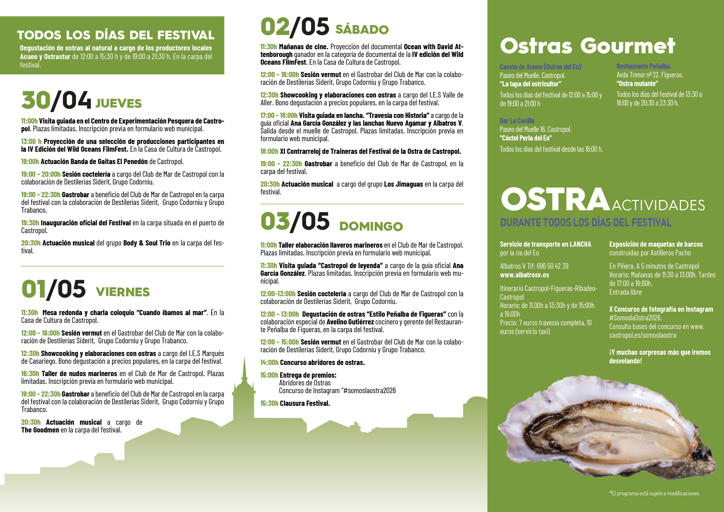 Además, durante los tres días del festival se podrá participar en el X Concurso de fotografía en Instagram, con el hashtag #somoslaostra2026. Puedes consultar las bases del concurso a través de www.castropol.es/somoslaostra